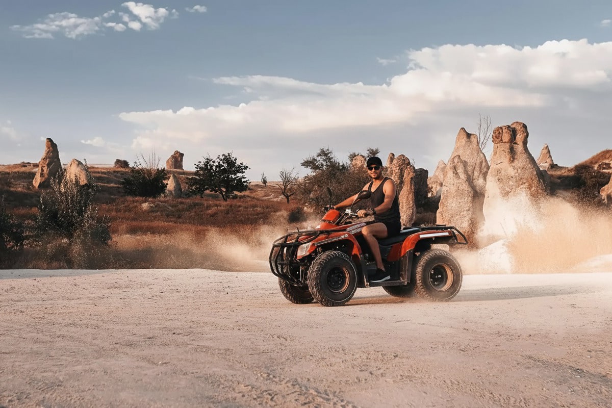 Whether you're an experienced rider or a first-time adventurer, this tour offers a perfect mix of adrenaline and stunning scenery. After hotel pickup, your local guide will provide a short briefing and safety gear. Then, hop onto your ATV and get ready to ride through Cappadocia’s lunar-like terrain, carved by centuries of wind and water.