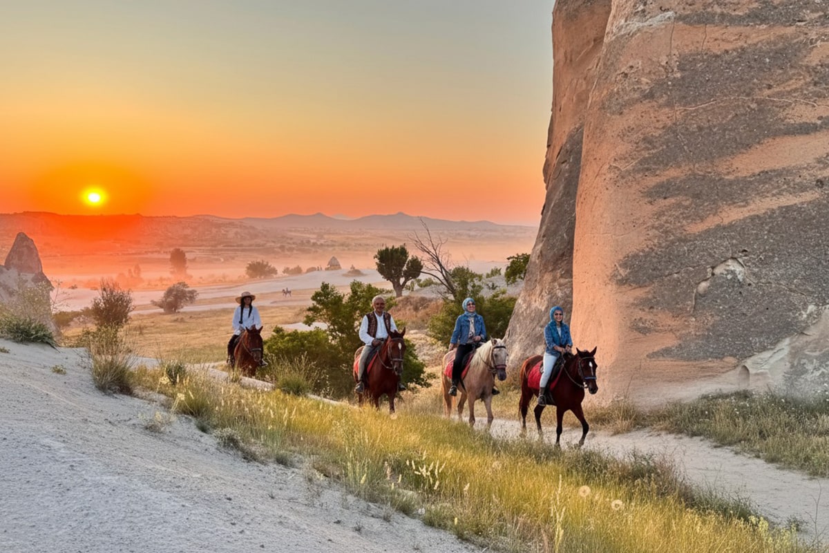Ride during golden hour and witness Cappadocia’s magical sunset on horseback.